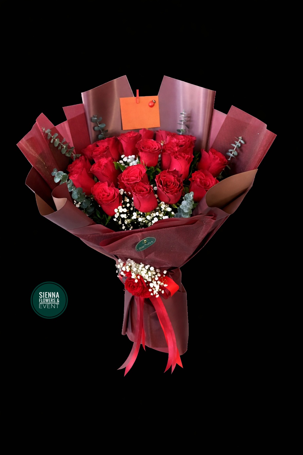 Ürünümüz de 21 adet kırmızı ekvator gülü ,cipso , okaliptüs bulunmaktadır.